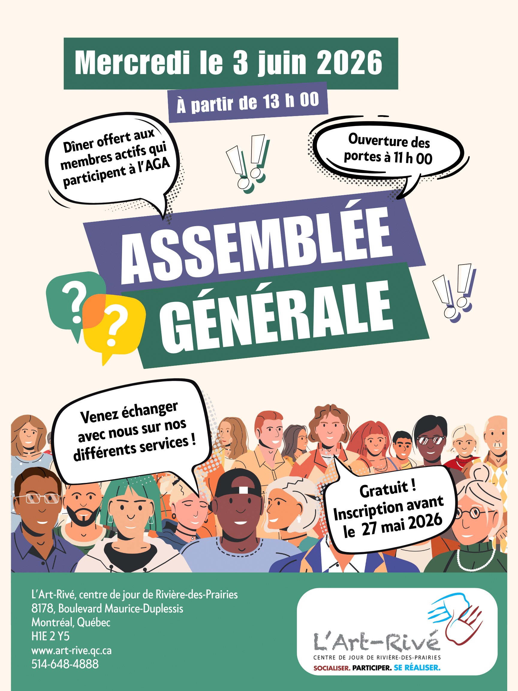 Évènements Activités spéciales à venir … Photos souvenirs Fête de Noel des membres 25e anniversaire de L’Art-Rivé